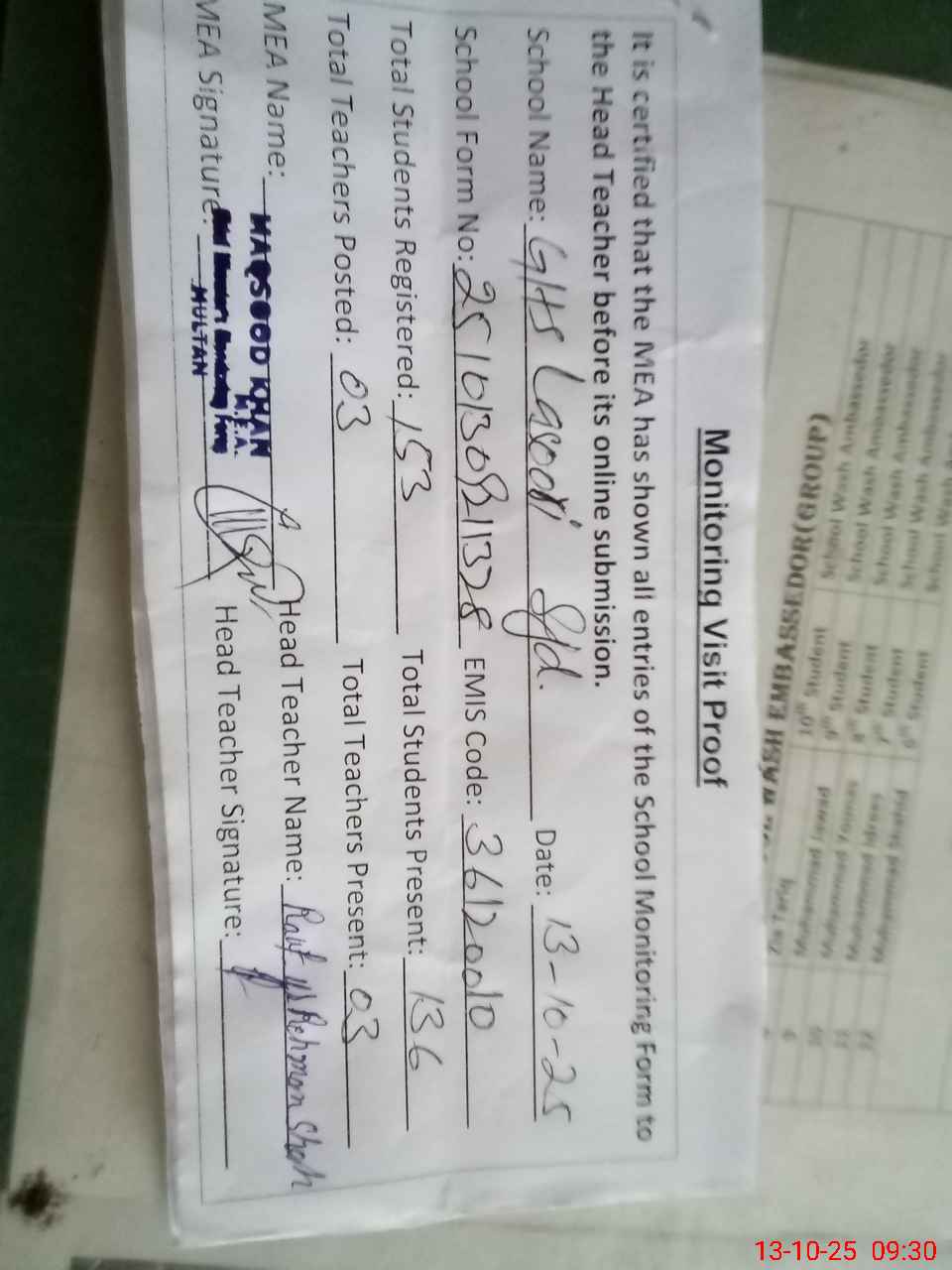 | EMIS Code: 36120010 | Name of School: GHS LASOORI TEH SHUJA ABAD | |||