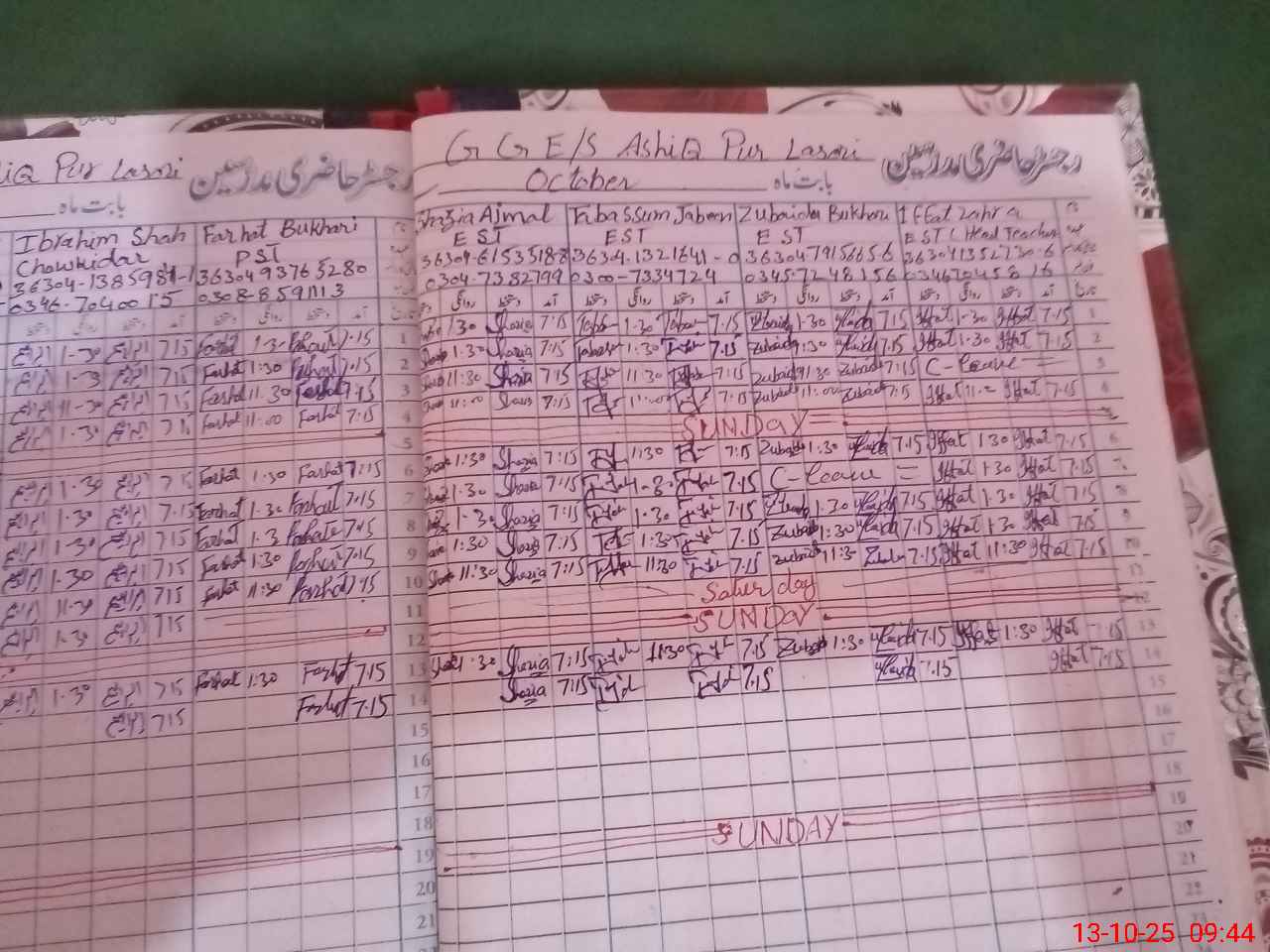 | Name: If**** Za**** Designation: (School Headmaster's/Headmistress's) Est (General) Phone/Cell Number: 03**** |