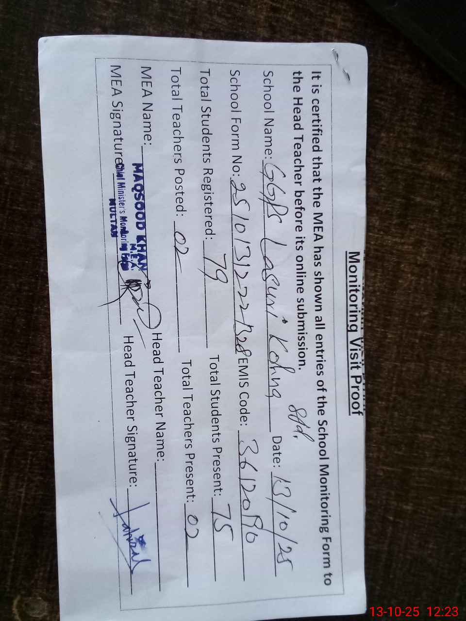| EMIS Code: 36120190 | Name of School: GGPS LASURI KOHNA MUMTAZ NAGAR SHUJABAD DISTT. MULTA | |||