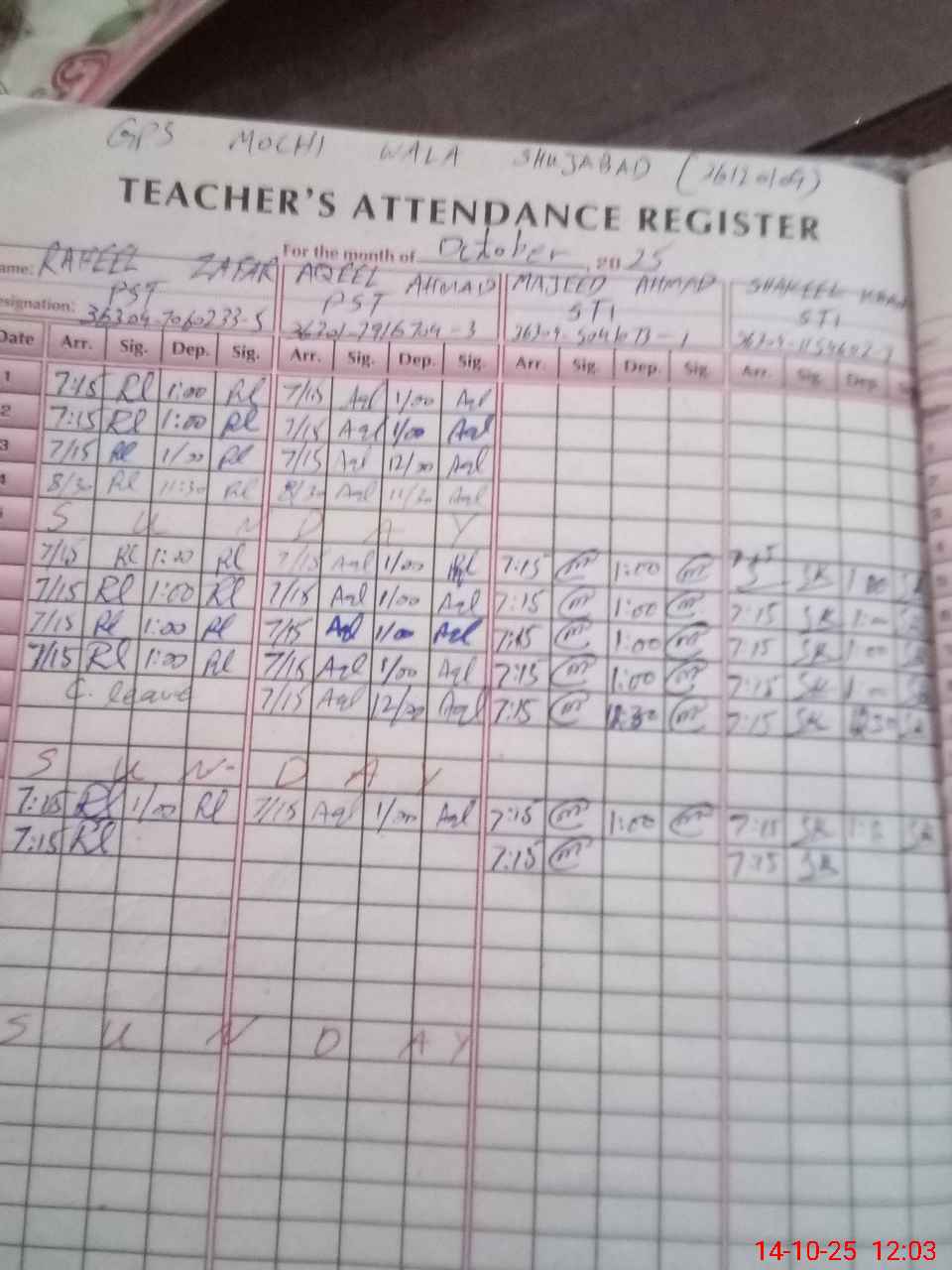 | CNIC | Full Name | Designation | R/C | Absence During Last Calender Month |