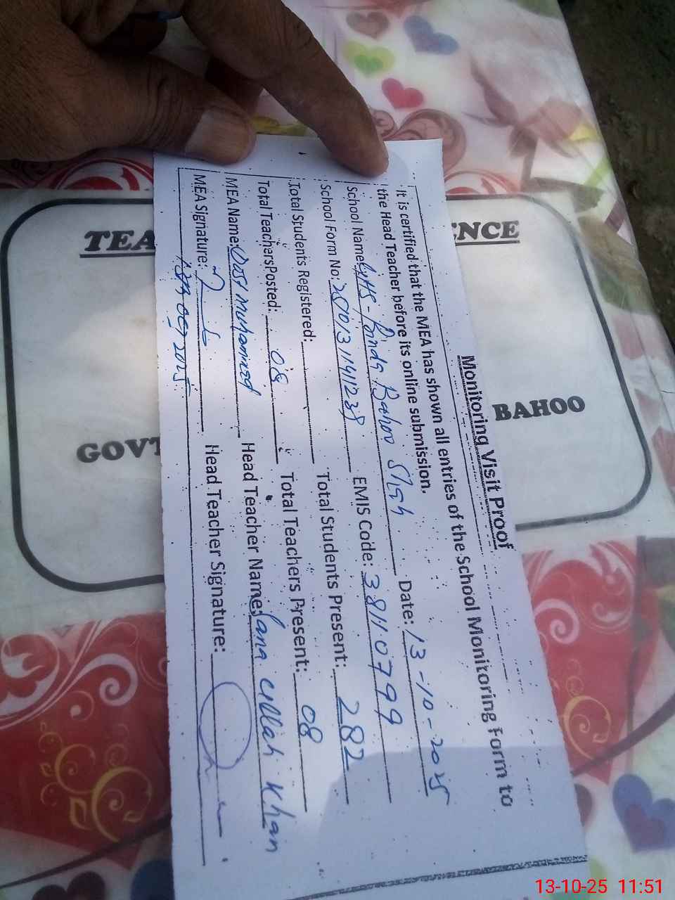 | Certified that this School was Inspected by the Undersigned MEA/DMO Today and the Information Stated Above is as Per Record. | |||||