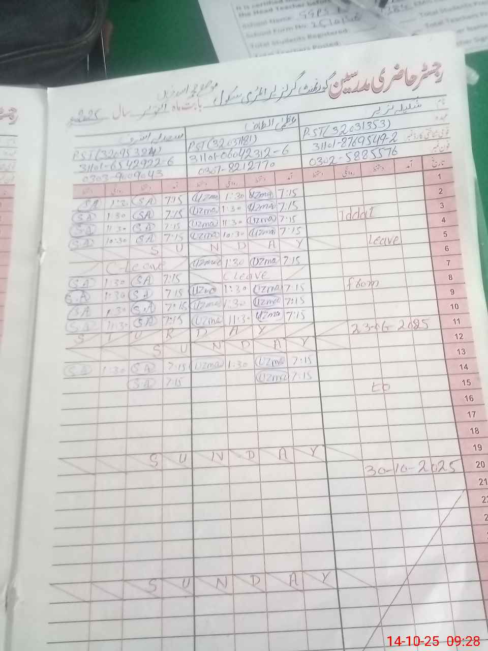 | Name: SH**** NA**** Designation: (School Headmaster's/Headmistress's) PST Phone/Cell Number: 03**** |
