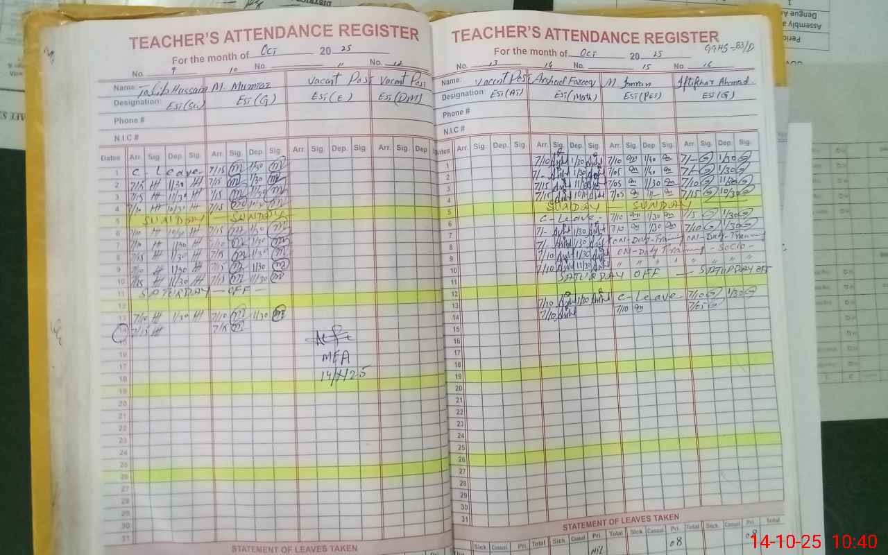 | CNIC | Full Name | Designation | R/C | Absence During Last Calender Month |
