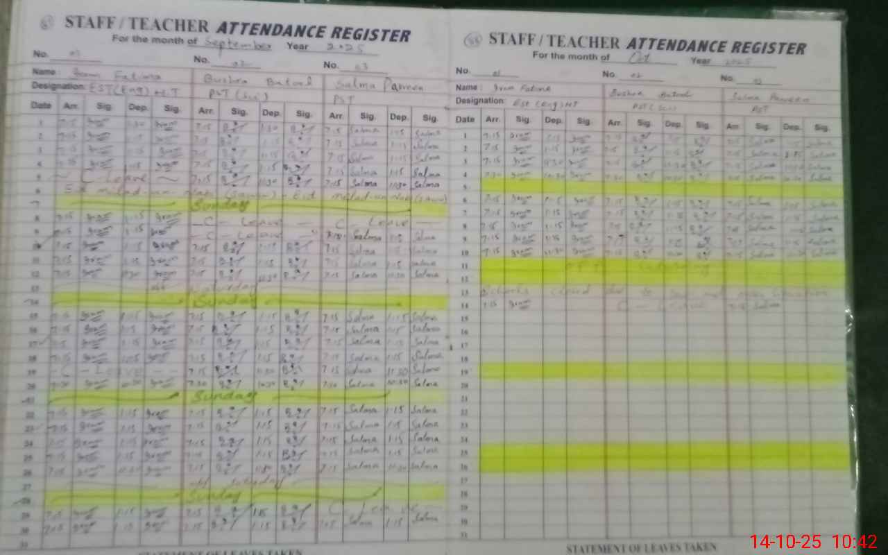 | Attendance Register | Head Teacher | MEA with School | Visit Proof |