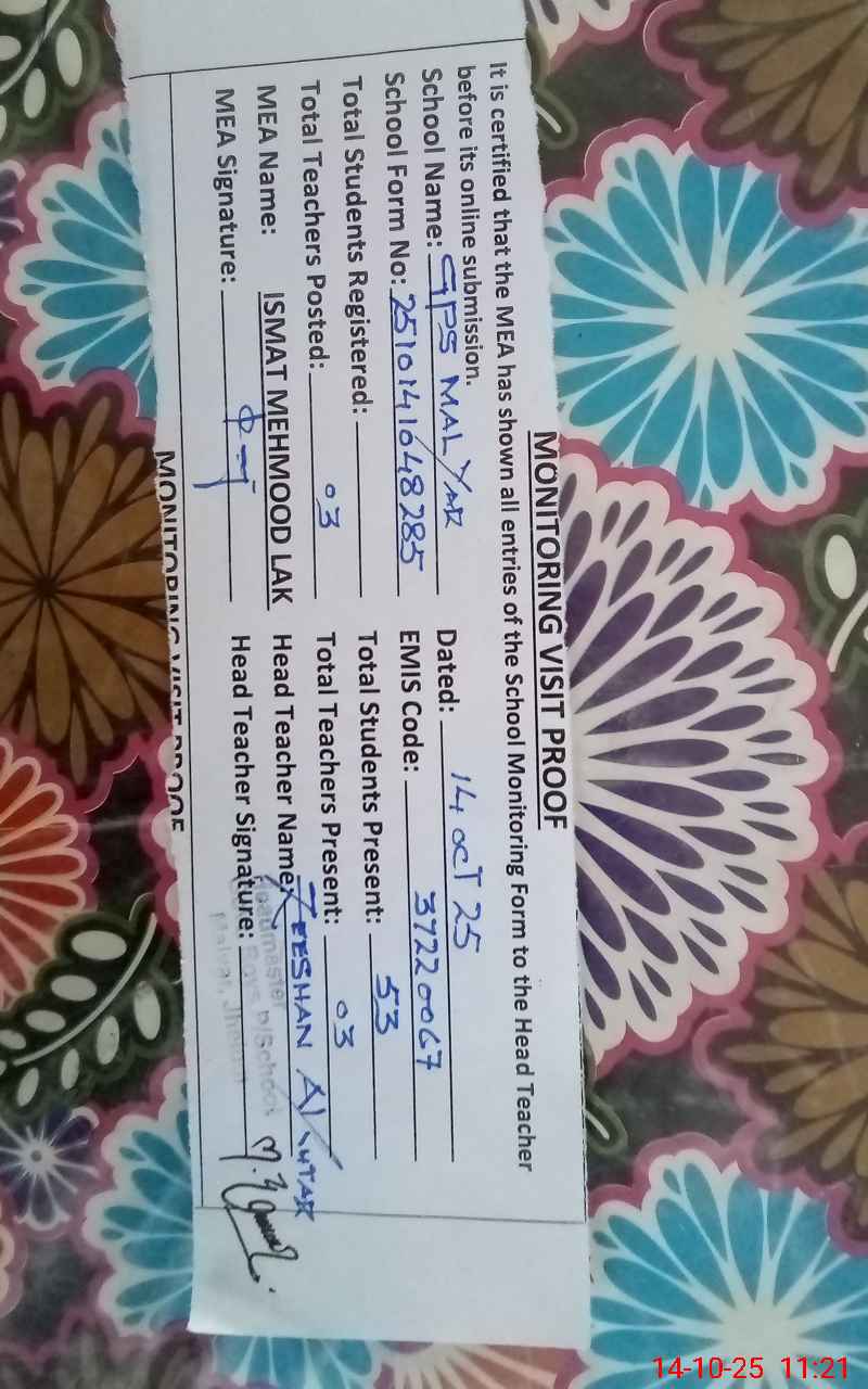 | EMIS Code: 37220067 | Name of School: GPS MALYAR | |||