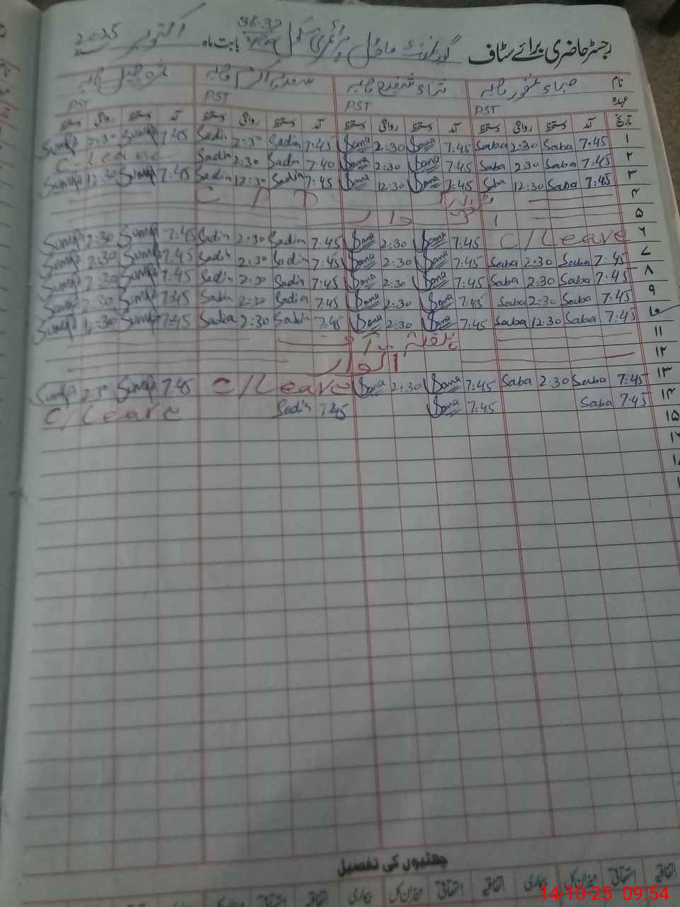 | CNIC | Full Name | Designation | R/C | Absence During Last Calender Month |