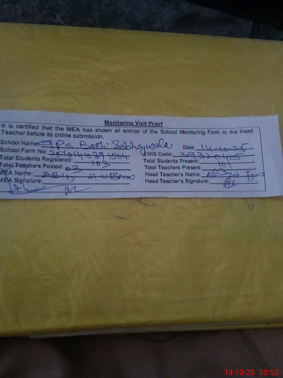 | EMIS Code: 39320405 | Name of School: GPS BASTI SOBHEY WALA | |||