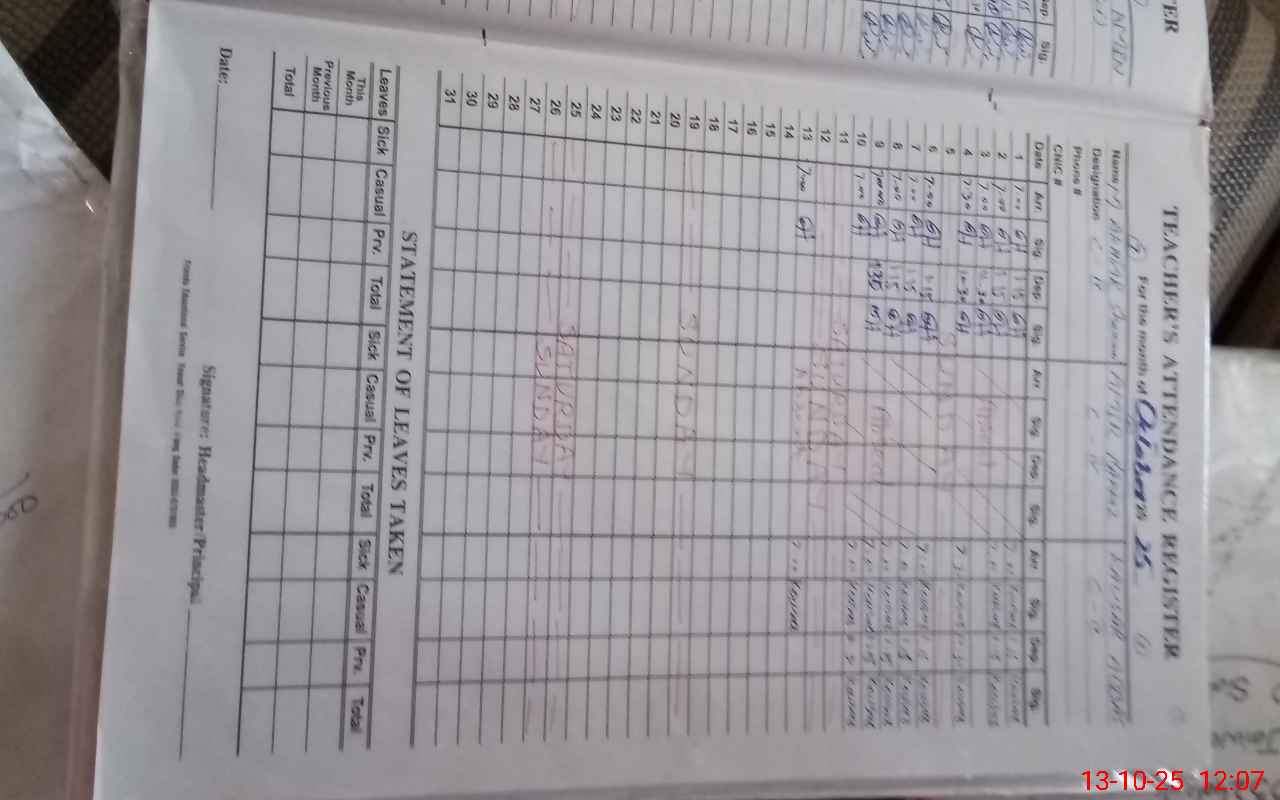 | Name: SA**** MA**** Designation: (School Headmaster's/Headmistress's) S.S.T(GENERAL) Phone/Cell Number: 03**** |