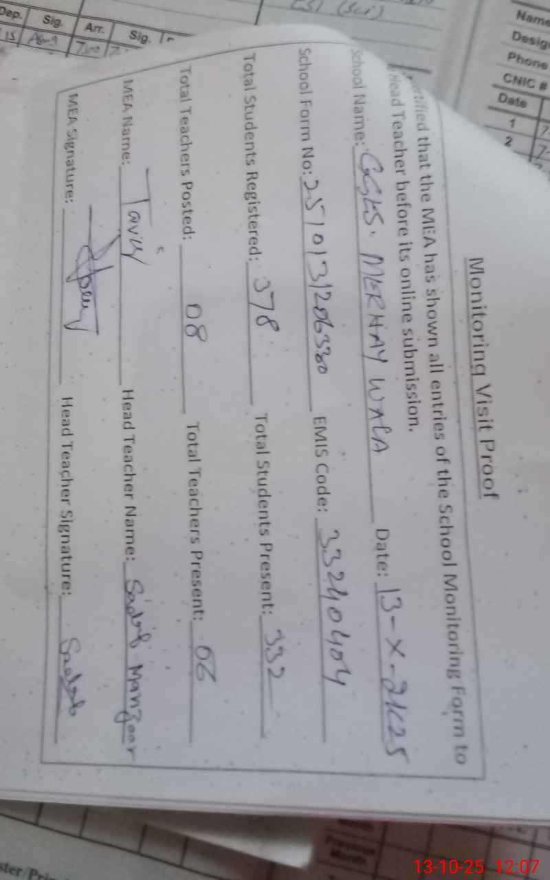 | EMIS Code: 33240404 | Name of School: GGES MEERNAY WALA | |||