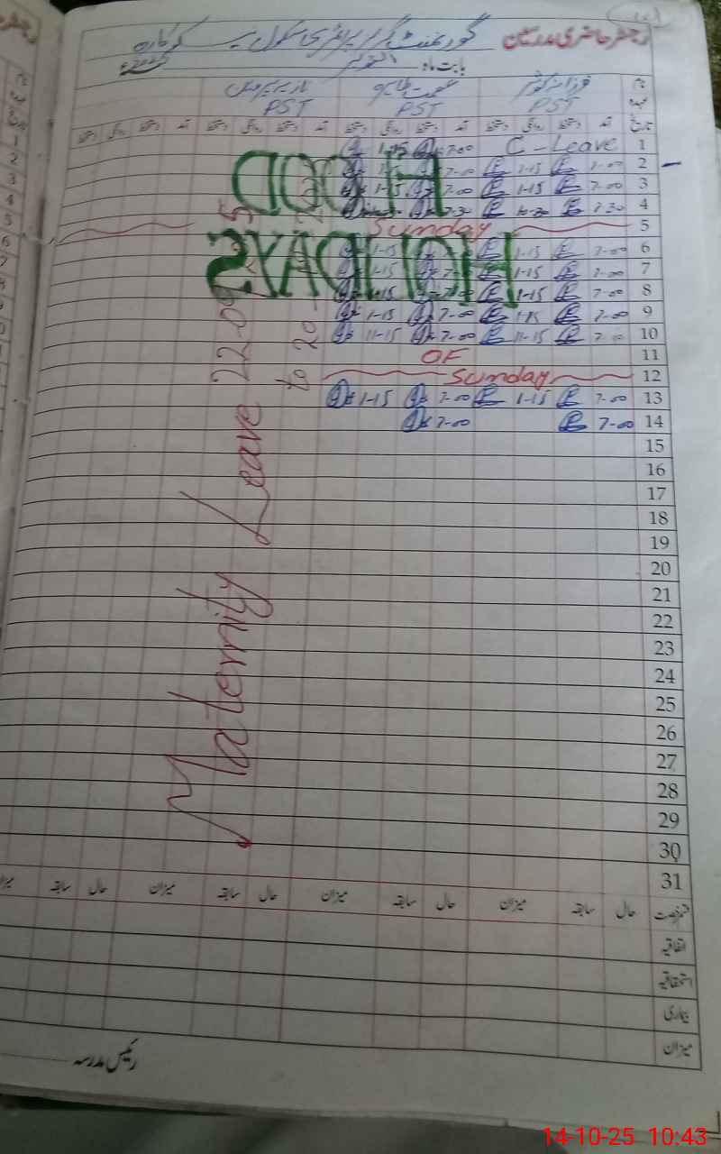 | 36**** | Na**** Pa**** | PST | Regular | 9 | 0 | 0 | 9 | 0 | 0 | 0 | 0 | 0 | Maternity |