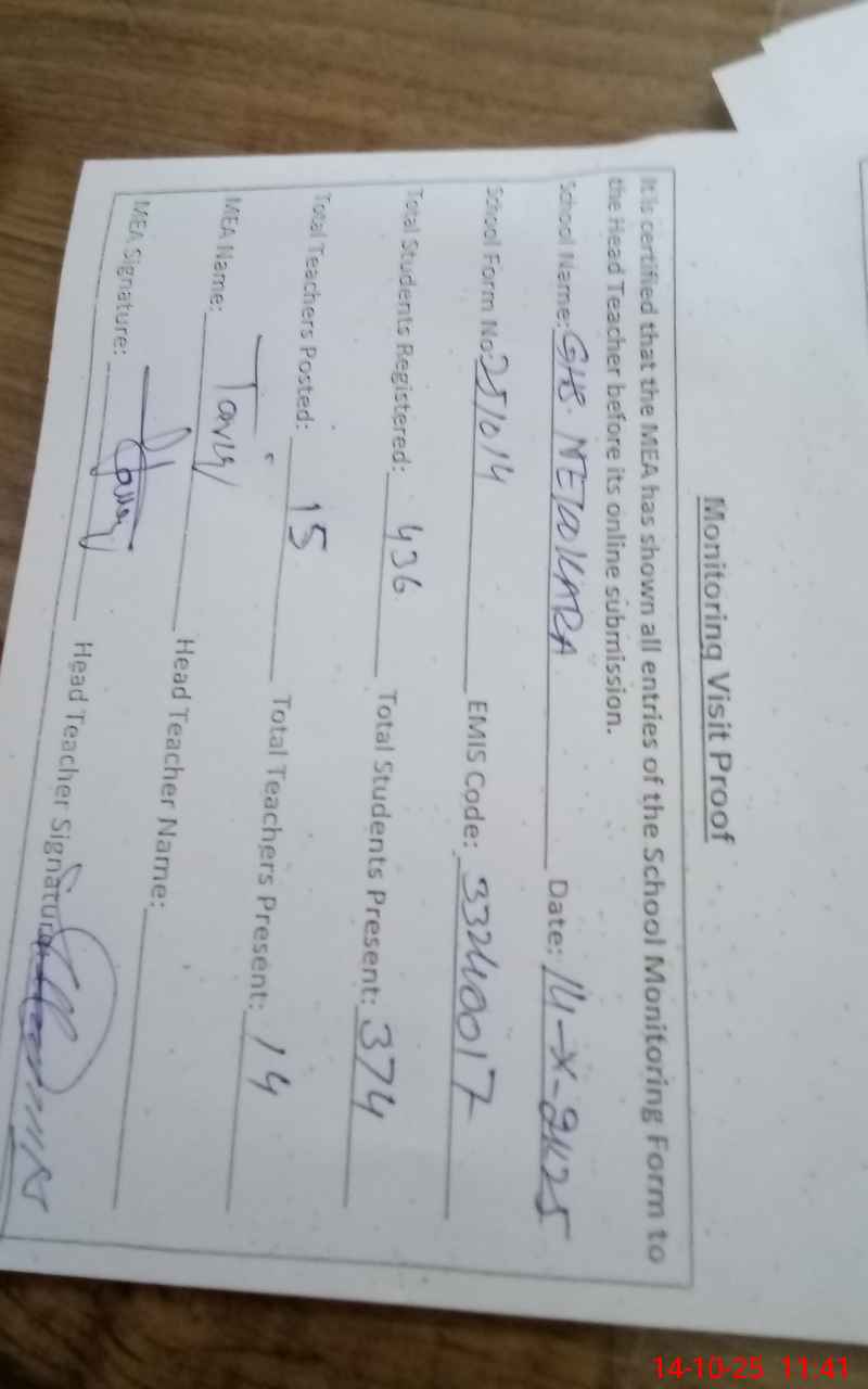 | Attendance Register | Head Teacher | MEA with School | Visit Proof |
