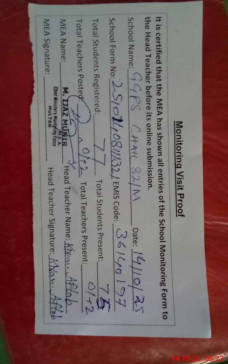 | EMIS Code: 36140197 | Name of School: GGPS CHAK NO. 82 / M | |||