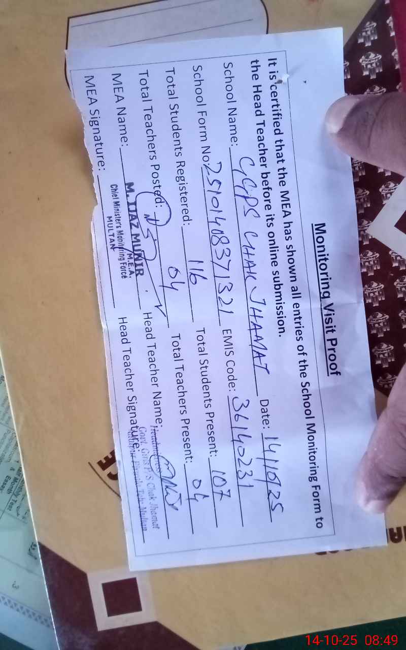 | EMIS Code: 36140231 | Name of School: GGPS CHAK JAHAMAT | |||