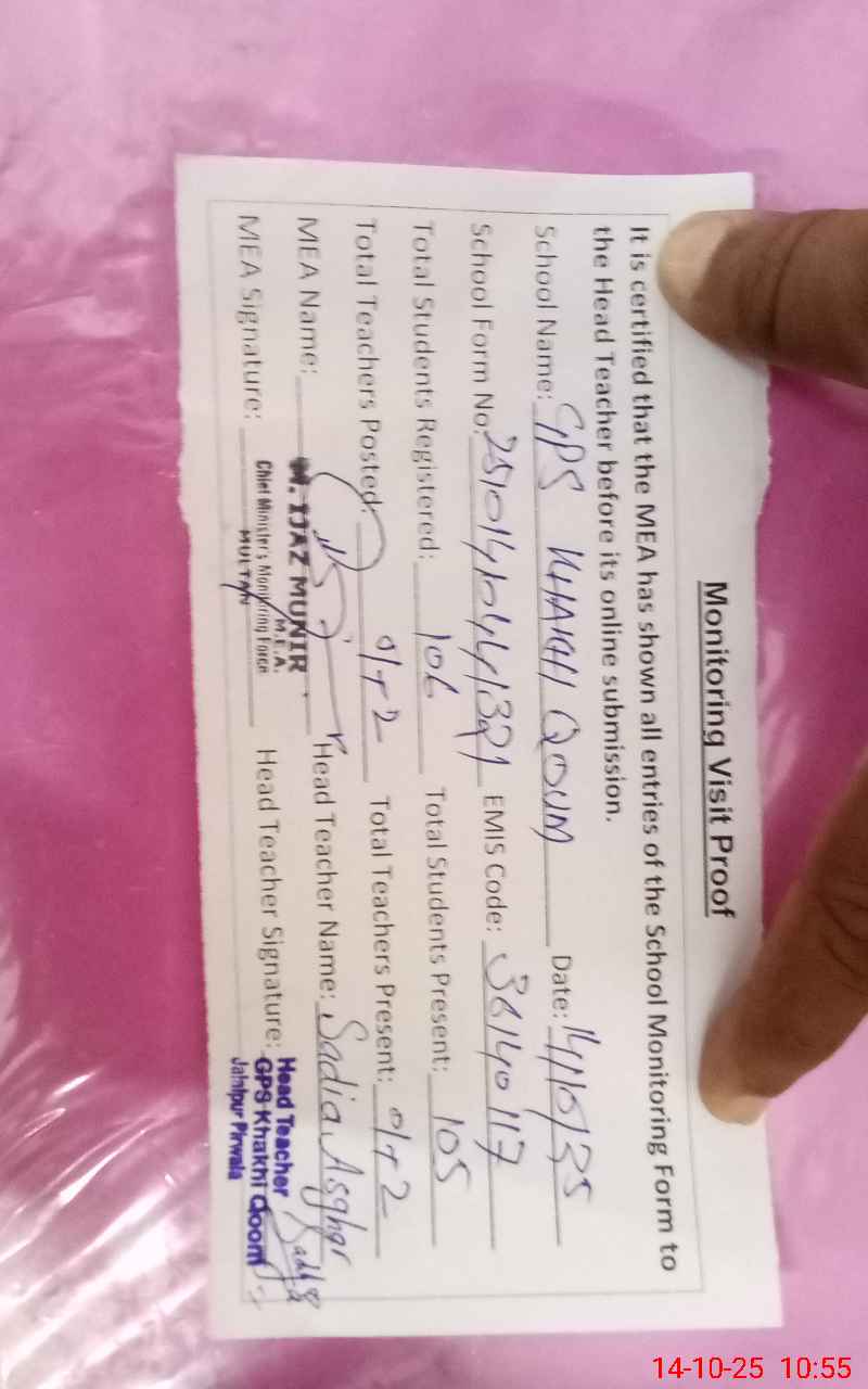 | EMIS Code: 36140117 | Name of School: GPS KHAKHI QOOM P/O GHAZI PUR JALALPUR PIRWALA | |||