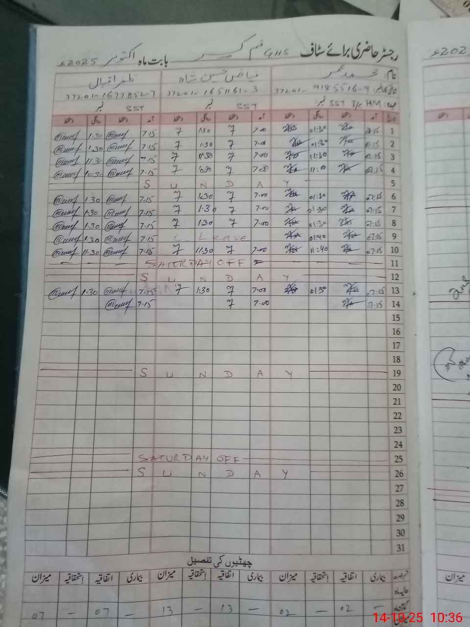 | CNIC | Full Name | Designation | R/C | Absence During Last Calender Month |