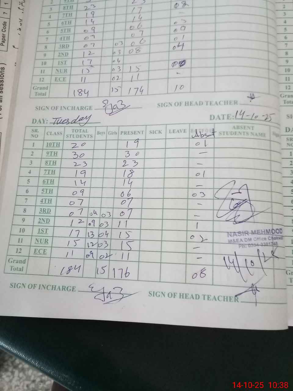 | Name: Mu**** Um**** Designation: (School Headmaster's/Headmistress's) I/c HEADMASTER Phone/Cell Number: 03**** |