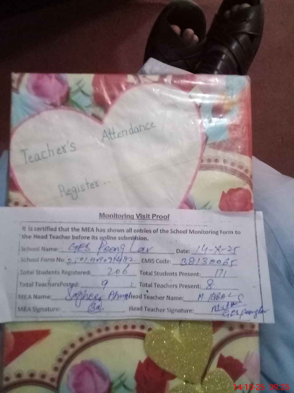 | Attendance Register | Head Teacher | MEA with School | Visit Proof |