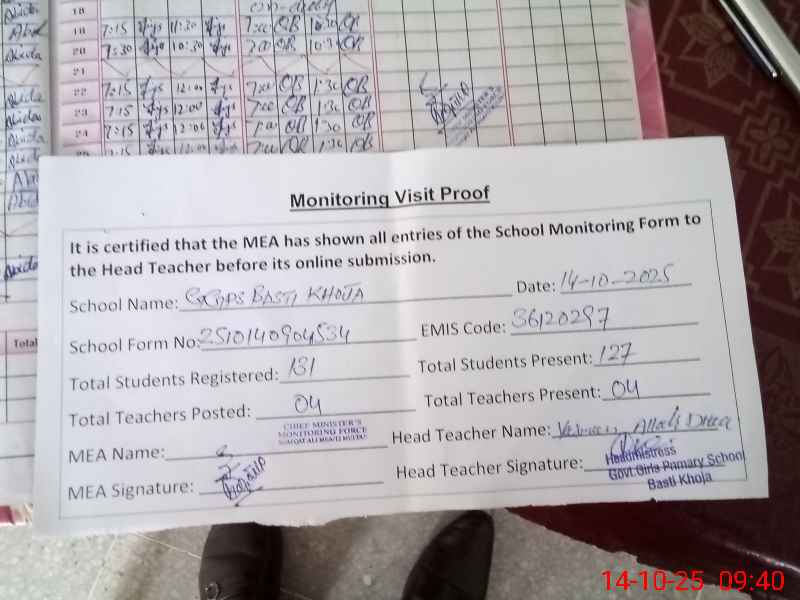 | EMIS Code: 36120297 | Name of School: GGPS BASTI KHOJA SHUJABAD | |||