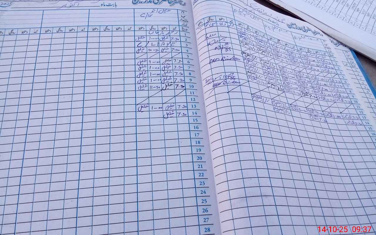 | CNIC | Full Name | Designation | R/C | Absence During Last Calender Month |