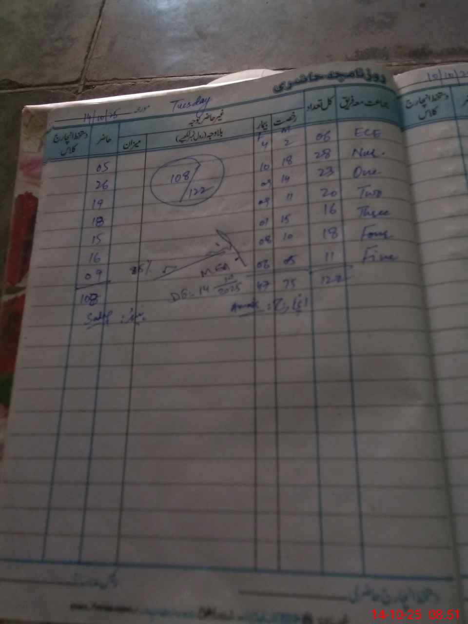 | Total Students Present | 6 | 0 | 24 | 19 | 18 | 15 | 14 | 8 | 104 | |||||||