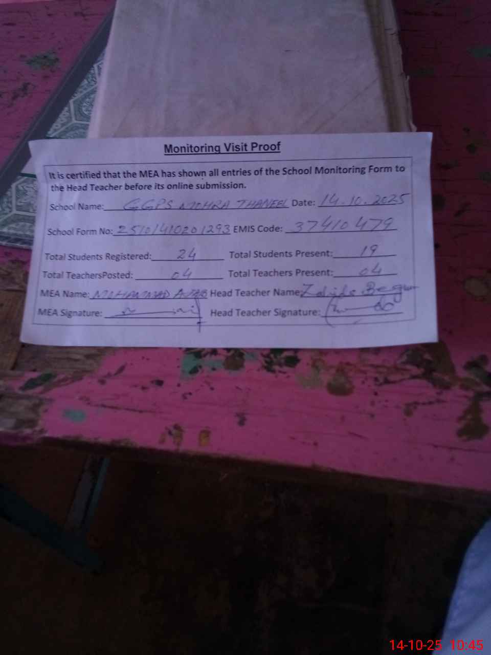 | EMIS Code: 37410479 | Name of School: GGPS MOHRA THANEEL NO.1 | |||