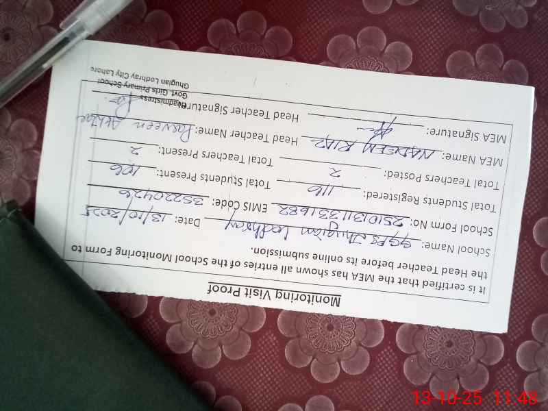 | Certified that this School was Inspected by the Undersigned MEA/DMO Today and the Information Stated Above is as Per Record. | |||||