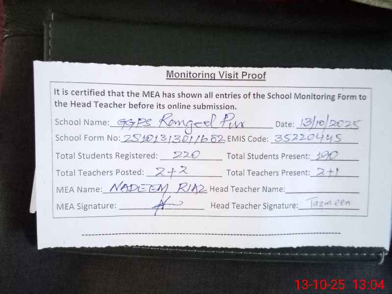 | EMIS Code: 35220445 | Name of School: GGPS RANGEEL PUR, MULTAN ROAD | |||