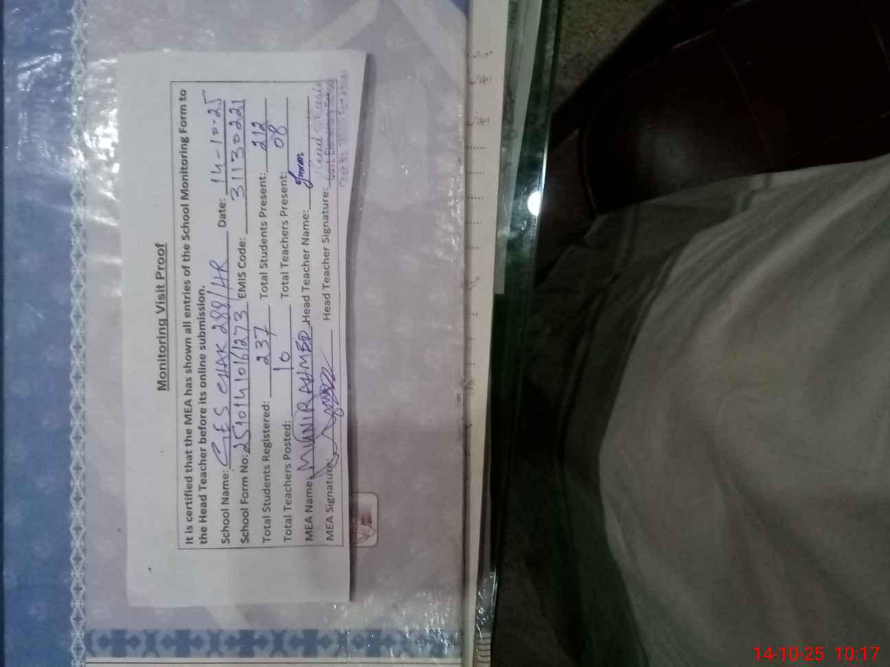 | Certified that this School was Inspected by the Undersigned MEA/DMO Today and the Information Stated Above is as Per Record. | |||||