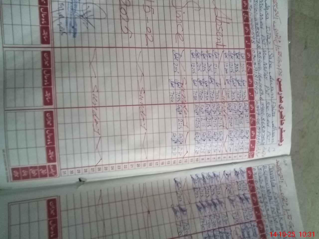 | CNIC | Full Name | Designation | R/C | Absence During Last Calender Month |