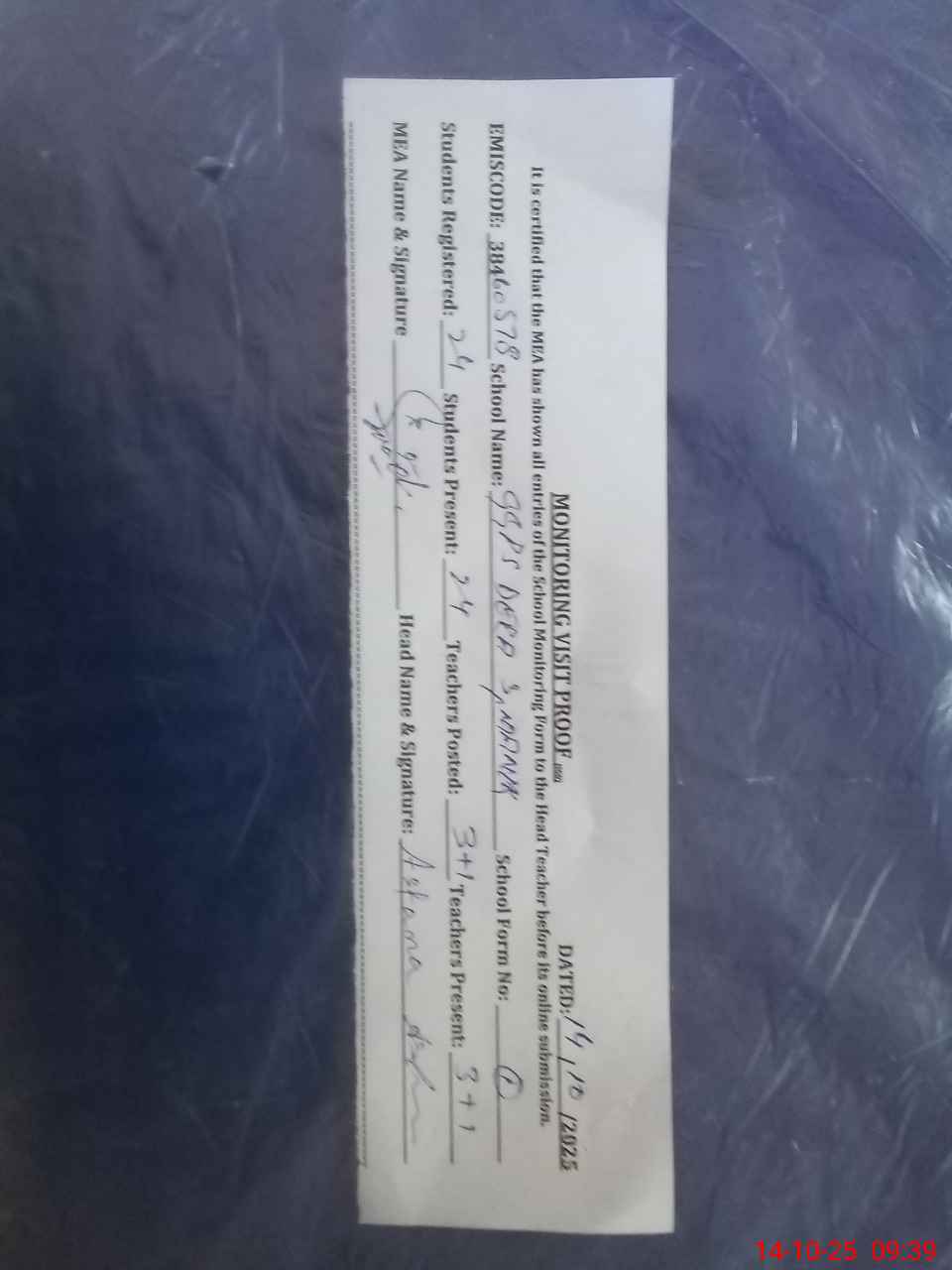 | Certified that this School was Inspected by the Undersigned MEA/DMO Today and the Information Stated Above is as Per Record. | |||||