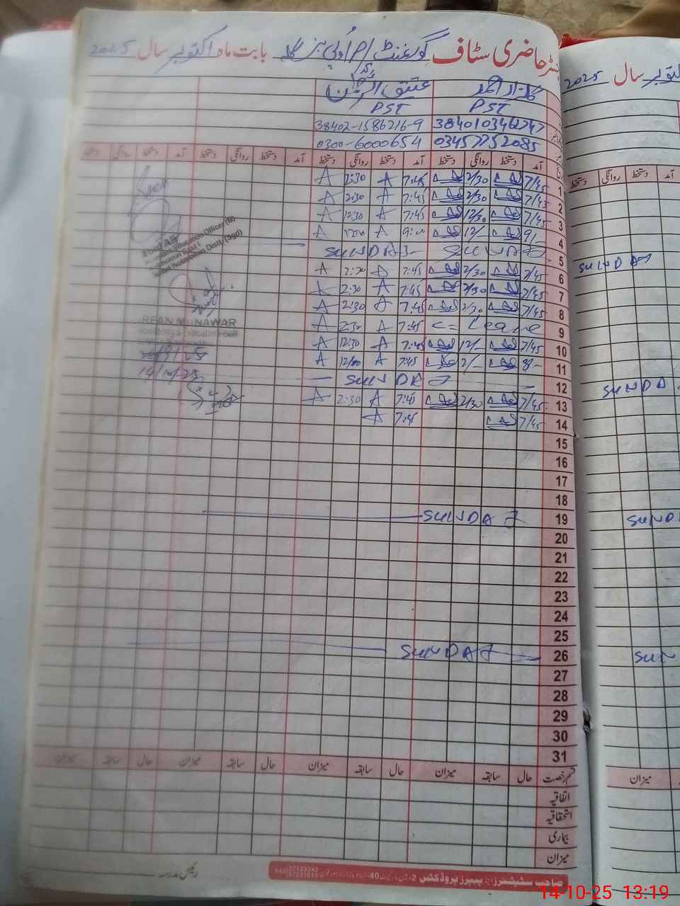 | Name: Ir**** Hu**** Designation: (School Headmaster's/Headmistress's) PST Phone/Cell Number: 03**** |
