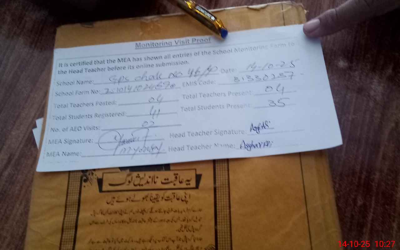 | EMIS Code: 31330237 | Name of School: GPS CHAK 46/P | |||