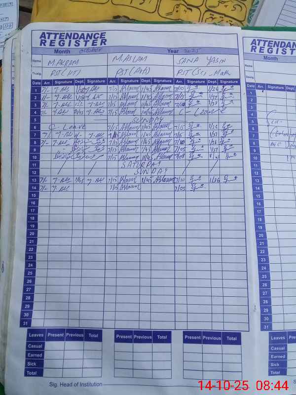| Name: MU**** AK**** Designation: (School Headmaster's/Headmistress's) PST Phone/Cell Number: 03**** |
