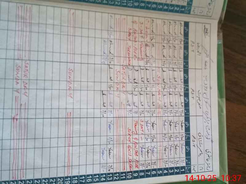 | CNIC | Full Name | Designation | R/C | Absence During Last Calender Month |