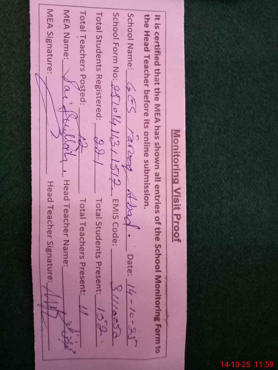 | EMIS Code: 31110050 | Name of School: GES FAROOQ ABAD | |||