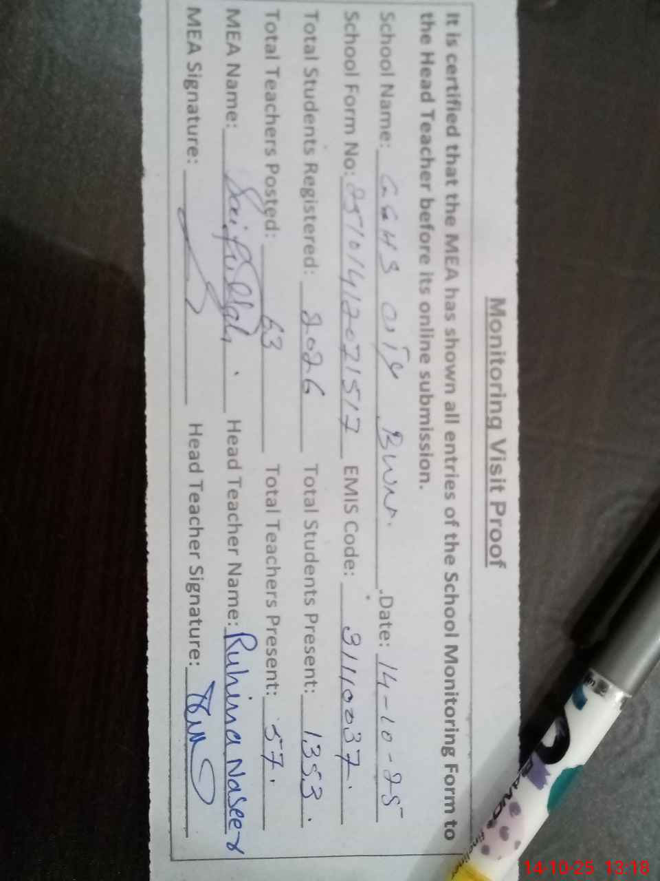 | Certified that this School was Inspected by the Undersigned MEA/DMO Today and the Information Stated Above is as Per Record. | |||||