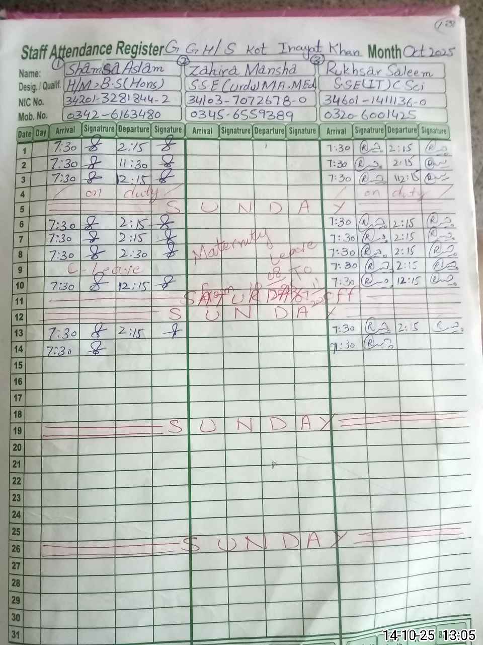 | 34**** | Za**** Ma**** | 6 | 2 | 0 | 0 | 0 | 0 | 0 | 0 | 0 | 0 | 0 | Absent (Un-Authorized) |