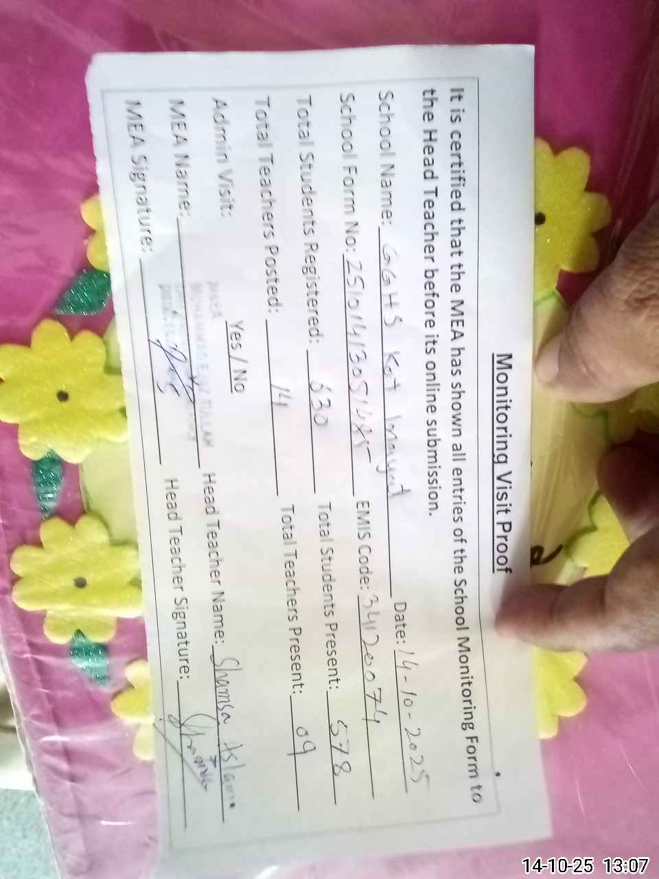 | EMIS Code: 34120074 | Name of School: GGHS KOT INAYAT KHAN | |||