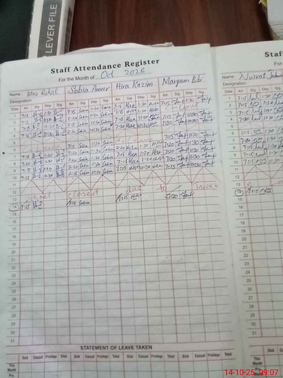 | Monitoring Date: 14-10-2025 | Start Time: 14-10-2025 08:29 AM | End Time: 14-10-2025 09:09 AM | Name of MEA: Za**** Ab**** | |