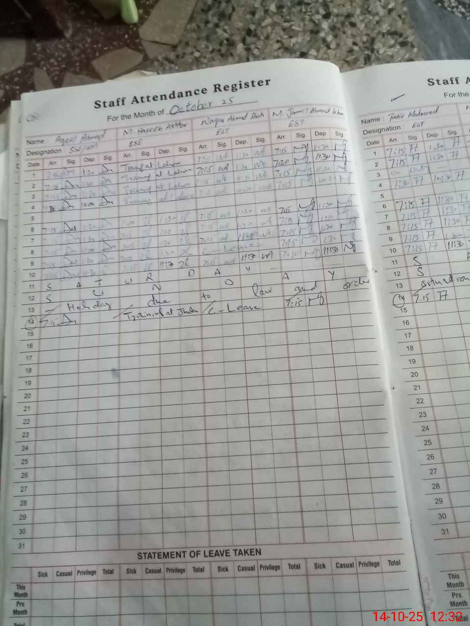 | Monitoring Date: 14-10-2025 | Start Time: 14-10-2025 12:02 PM | End Time: 14-10-2025 12:38 PM | Name of MEA: Za**** Ab**** | |
