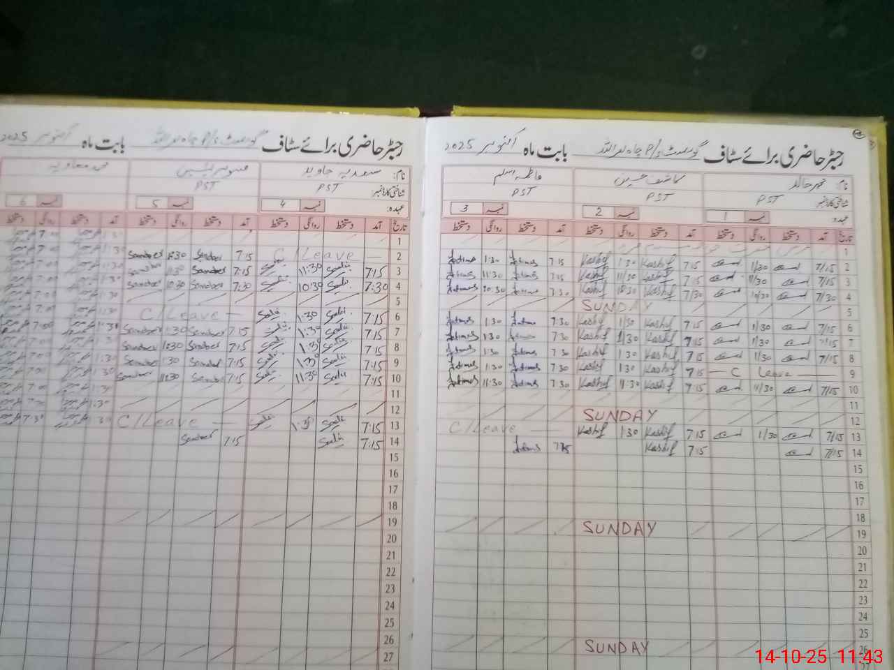 | CNIC | Full Name | Designation | R/C | Absence During Last Calender Month |