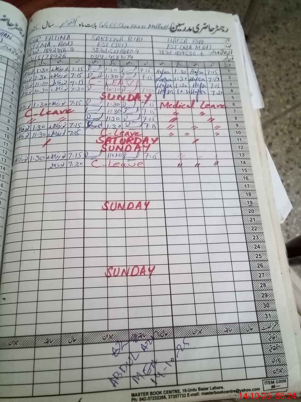 | 38**** | Mi**** Ra**** Kh**** | PST | Regular | 0 | 0 | 0 | 0 | 0 | 0 | 0 | 0 | 0 | Absent (Un-Authorized) |