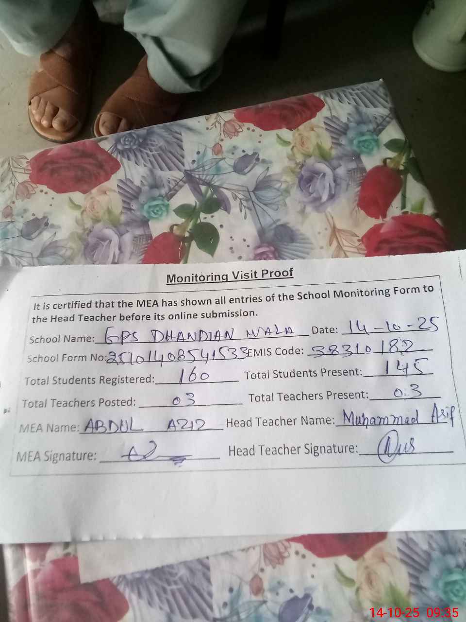 | EMIS Code: 38310182 | Name of School: GPS DHANDIAN WALA | |||