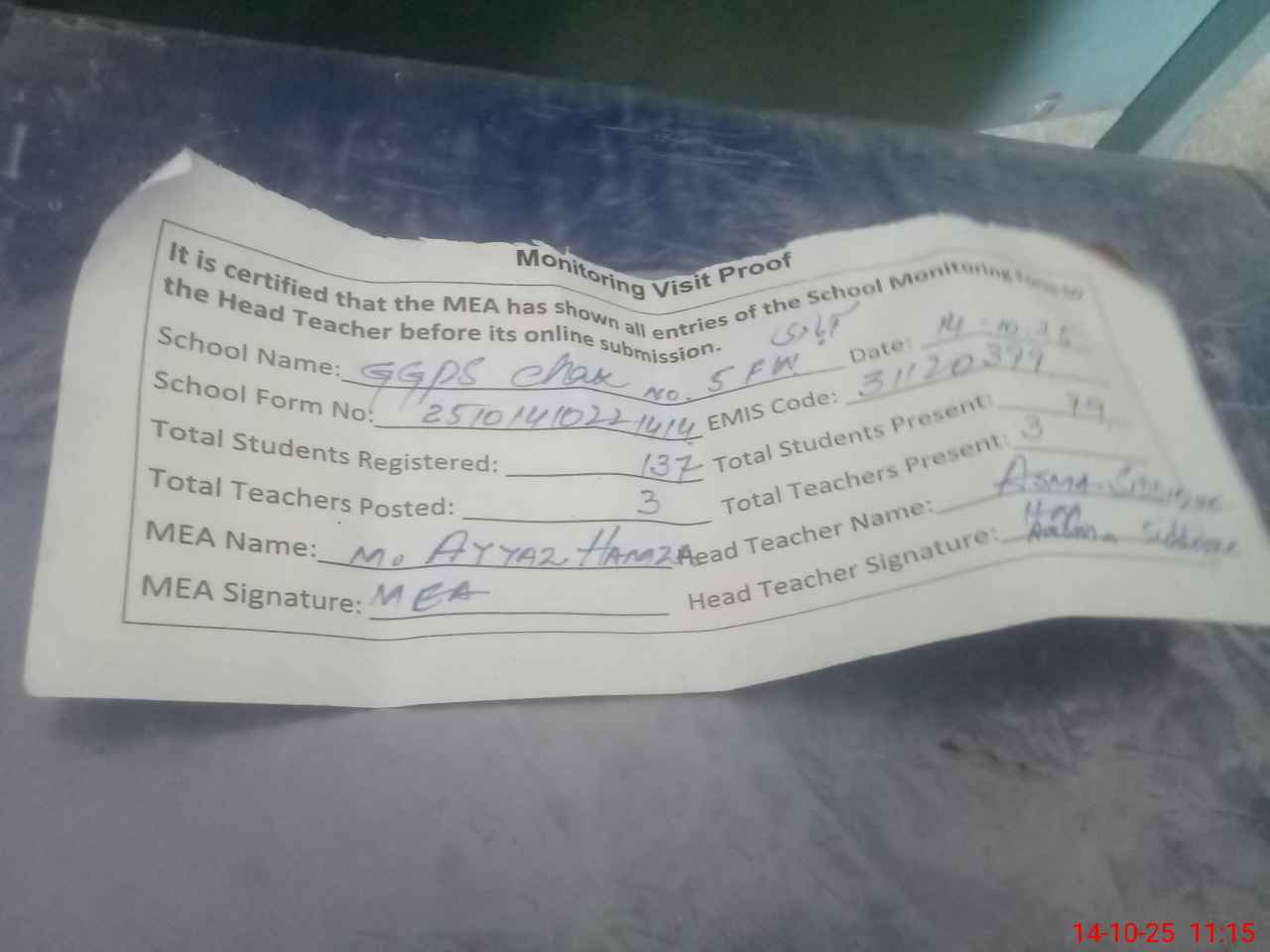 | EMIS Code: 31120399 | Name of School: GGPS 5/FW ABADI | |||
