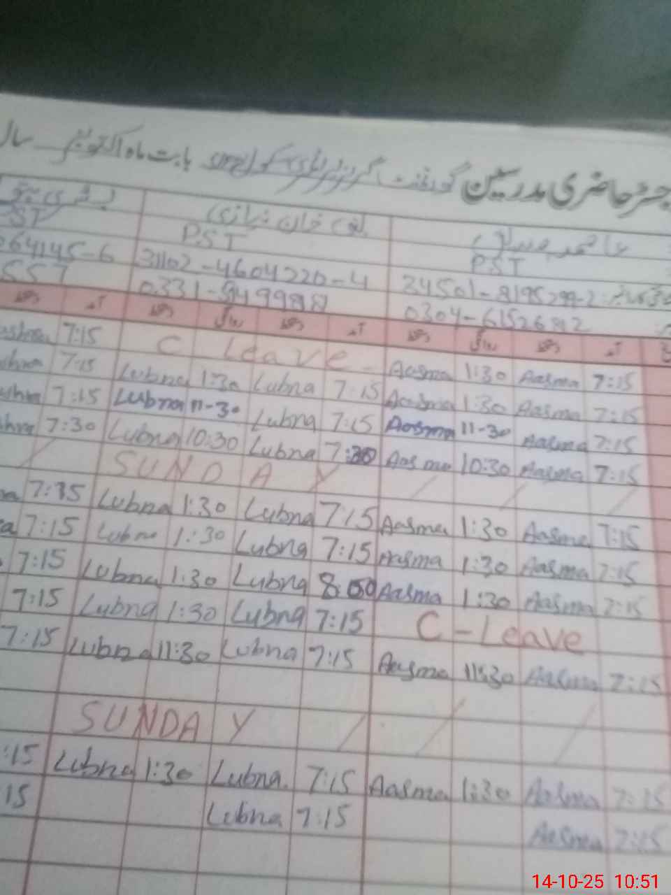 | Name: As**** Si**** Designation: (School Headmaster's/Headmistress's) PST Phone/Cell Number: 03**** |