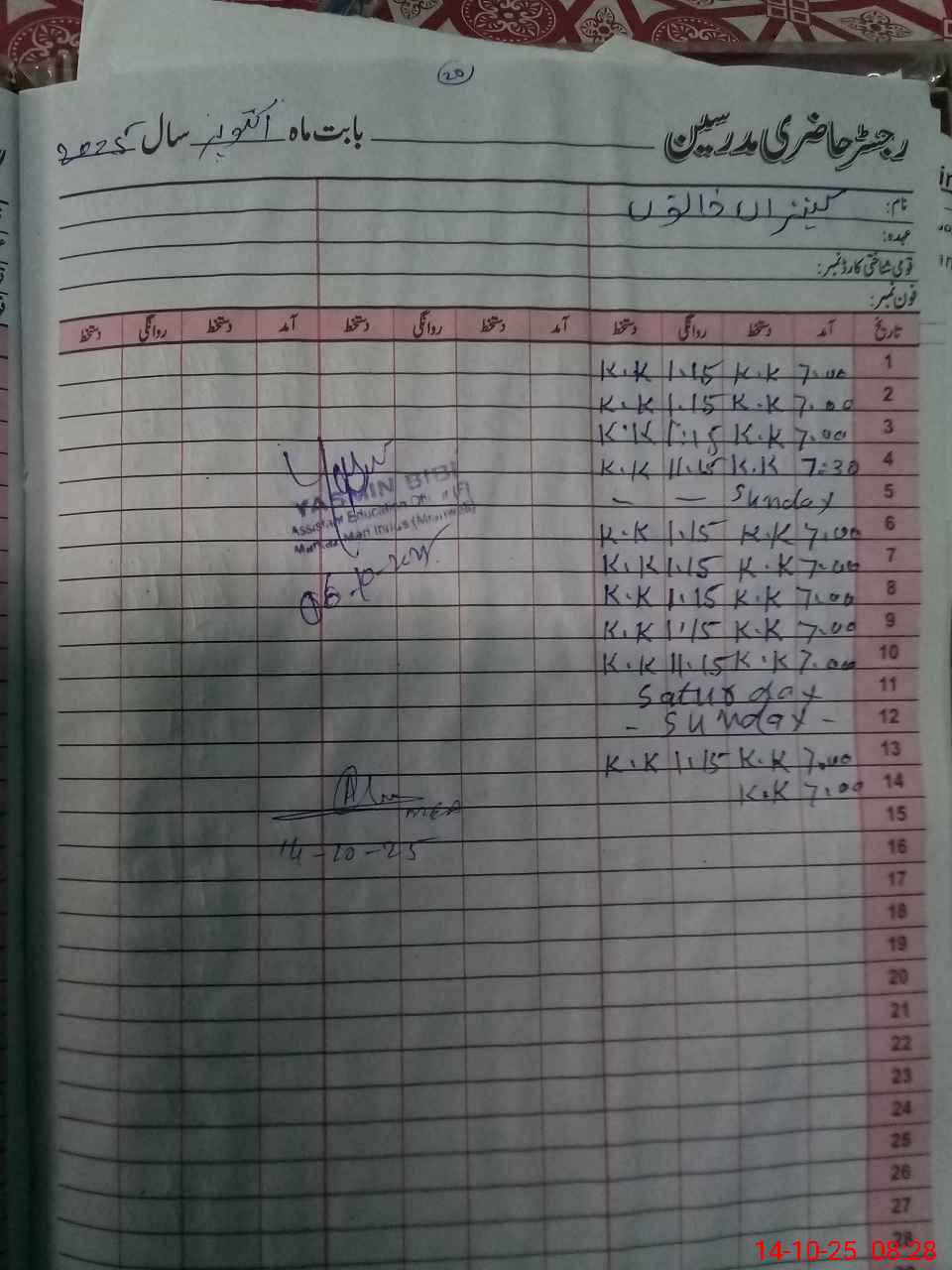| Name: AR**** SH**** Designation: (School Headmaster's/Headmistress's) PST Phone/Cell Number: 03**** |