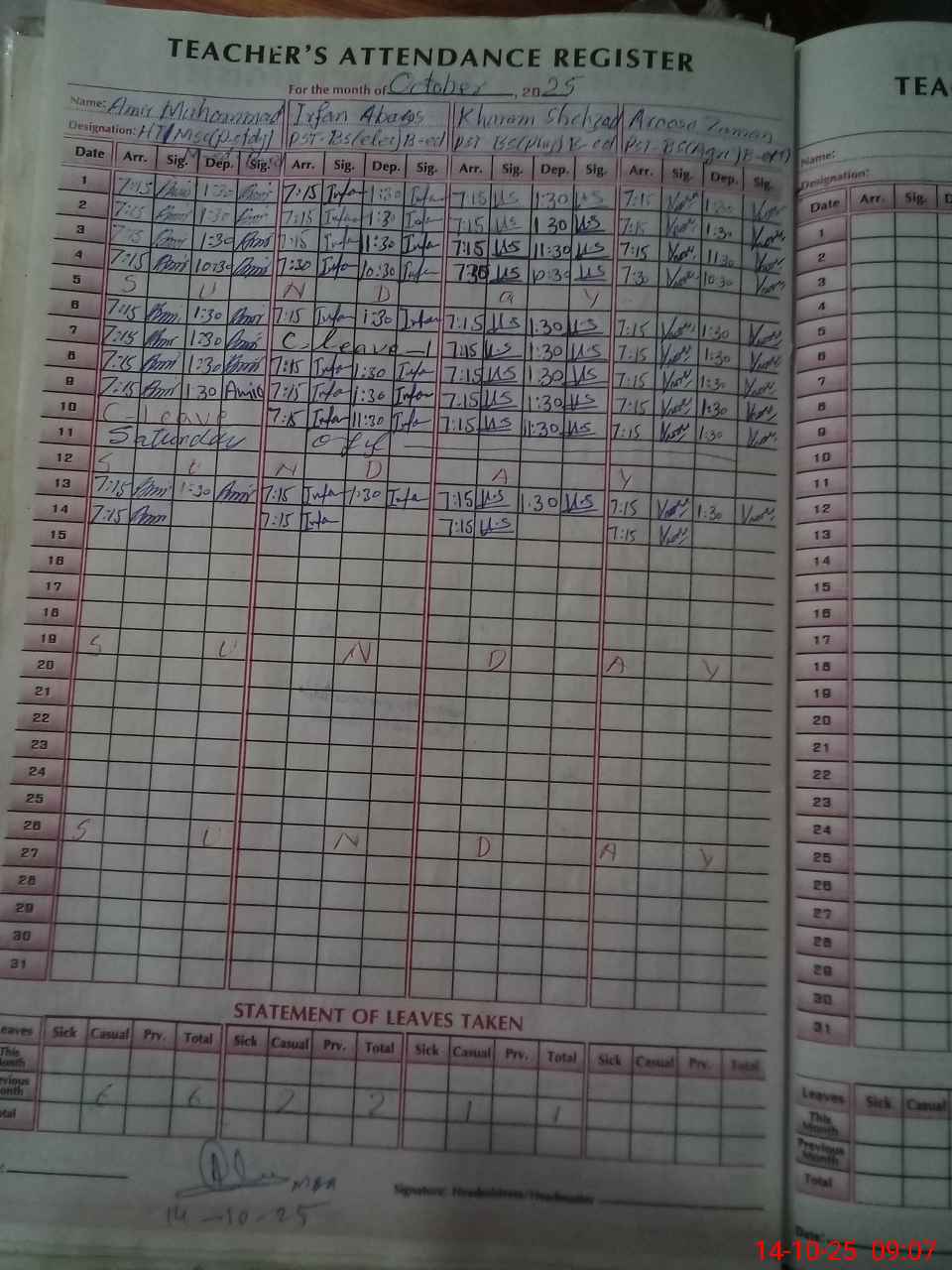 | Name: AM**** MU**** Designation: (School Headmaster's/Headmistress's) PST Phone/Cell Number: 03**** |