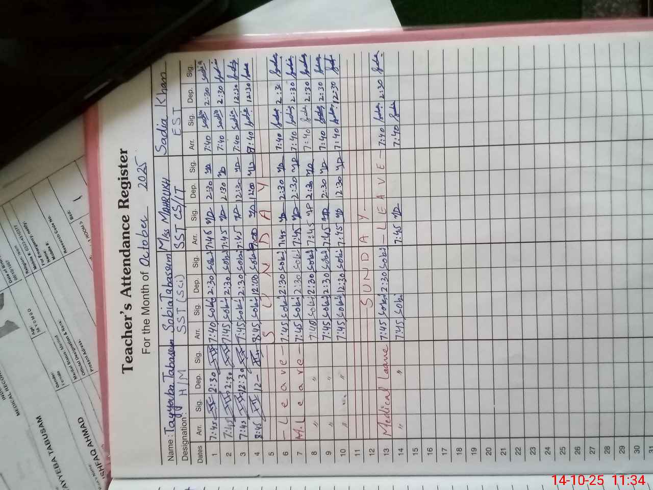 | Remarks (Use Separate Page if Required): Head Mistress Tayyeba Tabusam on medical but her leave is under process so mark him absent Paint work not up to standard Several doors are looking damaged 35210822 | |||||