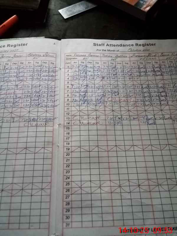 | Attendance Register | Head Teacher | MEA with School | Visit Proof |