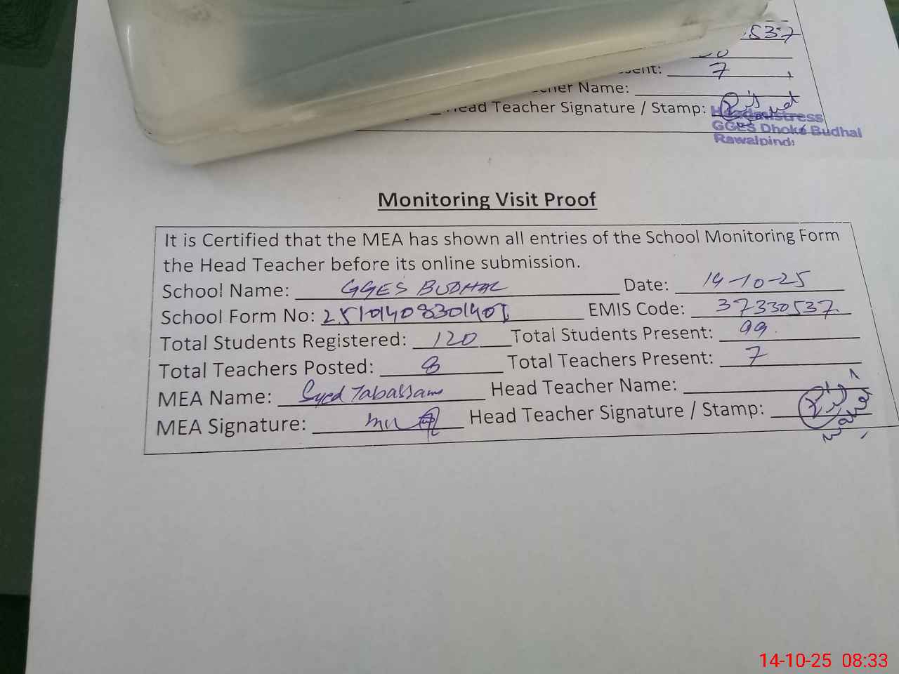 | EMIS Code: 37330537 | Name of School: GGES DHOK BUDHAL | |||